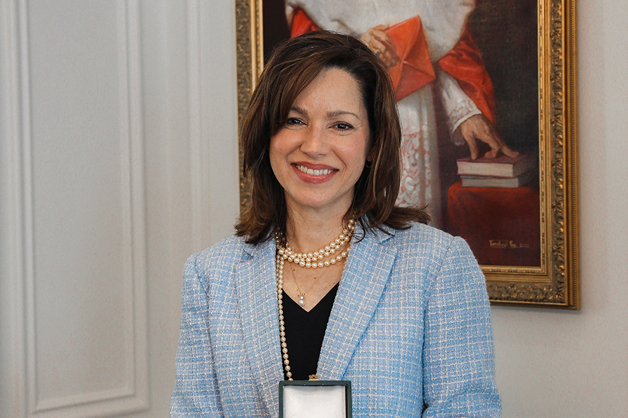WASHINGTON, D.C. — On Wednesday, October 22nd, Dr. Elizabeth Spalding (’88), Chairman of the Victims of Communism Memorial Foundation and Visiting Fellow at Hillsdale College’s Van Andel Graduate School of Government, was awarded the Officer’s Cross of the Order of Merit of Hungary. The award, bestowed by the President of Hungary Tamás Sulyok, was read by Hungarian Ambassador to the United States Szabolcs Takács and presented by the Hungarian Foreign Minister Peter Szijjarto at the Hungarian Embassy in Washington, D.C. at the embassy’s commemoration of the anniversary of the 1956 Hungarian Revolution. Also in attendance was Christopher Landau, the Deputy Secretary of State of the United States.